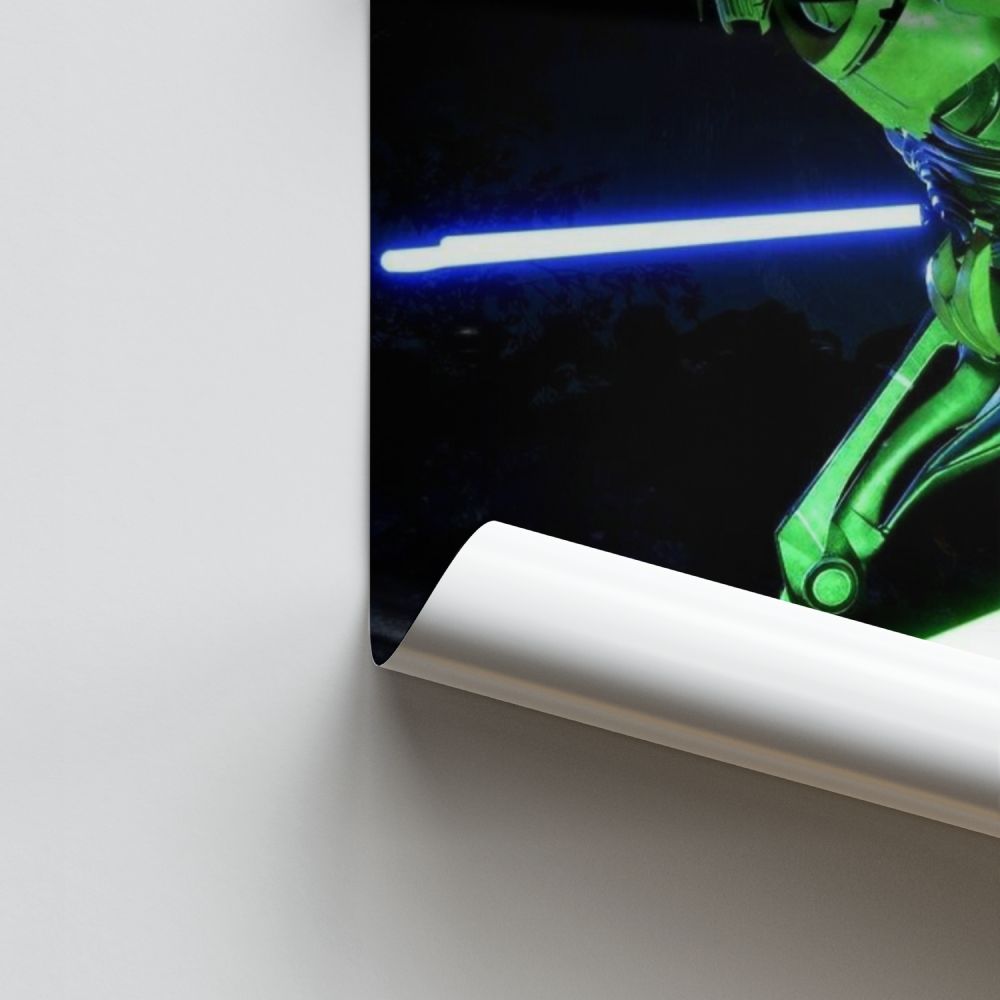 Entdecken Sie das Star Wars-Universum mit unserem exklusiven General Grievous-Poster. Als berühmter Antagonist der Saga wird er mit vier mit Lichtschwertern bewaffneten Armen dargestellt, bereit zum Kampf gegen die Jedi. Dieses auf hochwertigem Papier gedruckte Poster verleiht Ihrer Inneneinrichtung einen Hauch von Intensität und Geheimnis.